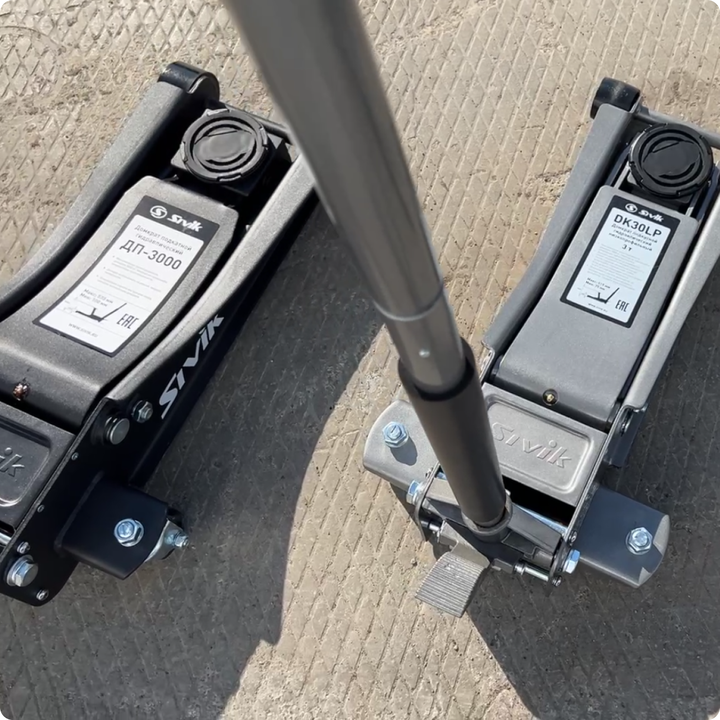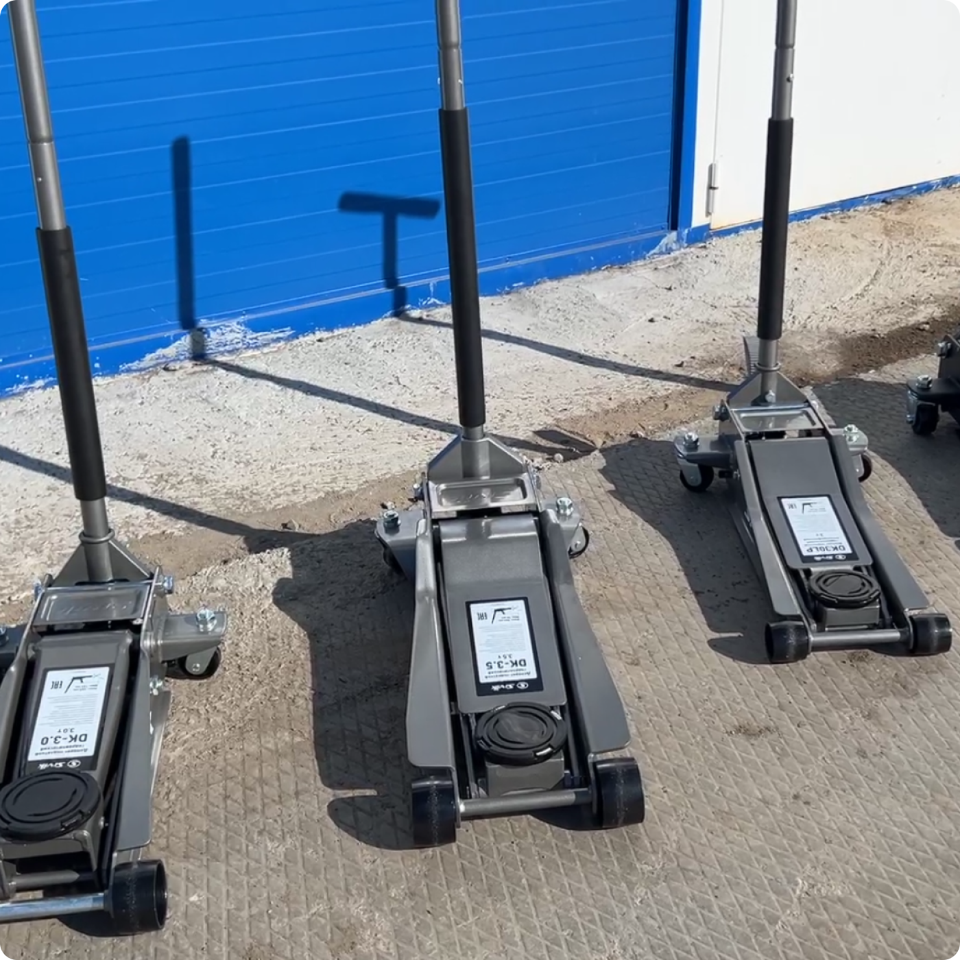 • ДП-3000. Домкрат премиум-класса, сочетающий в себе максимальную надежность, удобство и производительность. Минимальная высота подхвата составляет 100 мм, а высота подъема – 533 мм. Грузоподъемность равна 3 тоннам при собственном весе в 43 кг. Быстрый подъем обеспечивается двухплунжерной гидравлической системой, а предохранительный клапан защищает оборудование от перегрузки. Для удобства эксплуатации предусмотрены вращающаяся Т-образная рукоятка с рифленой тактильной частью, комфортная педаль для выбора свободного хода, встроенный лоток для хранения мелких деталей. Также ДП-3000 оснащается защитными накладками из EVA-пены и тавотницами для смазывания подвижных деталей во время эксплуатации.