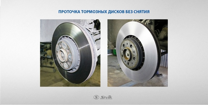 • проточка обязательно выполняется на обоих дисках одной оси, чтобы они имели одинаковую толщину.